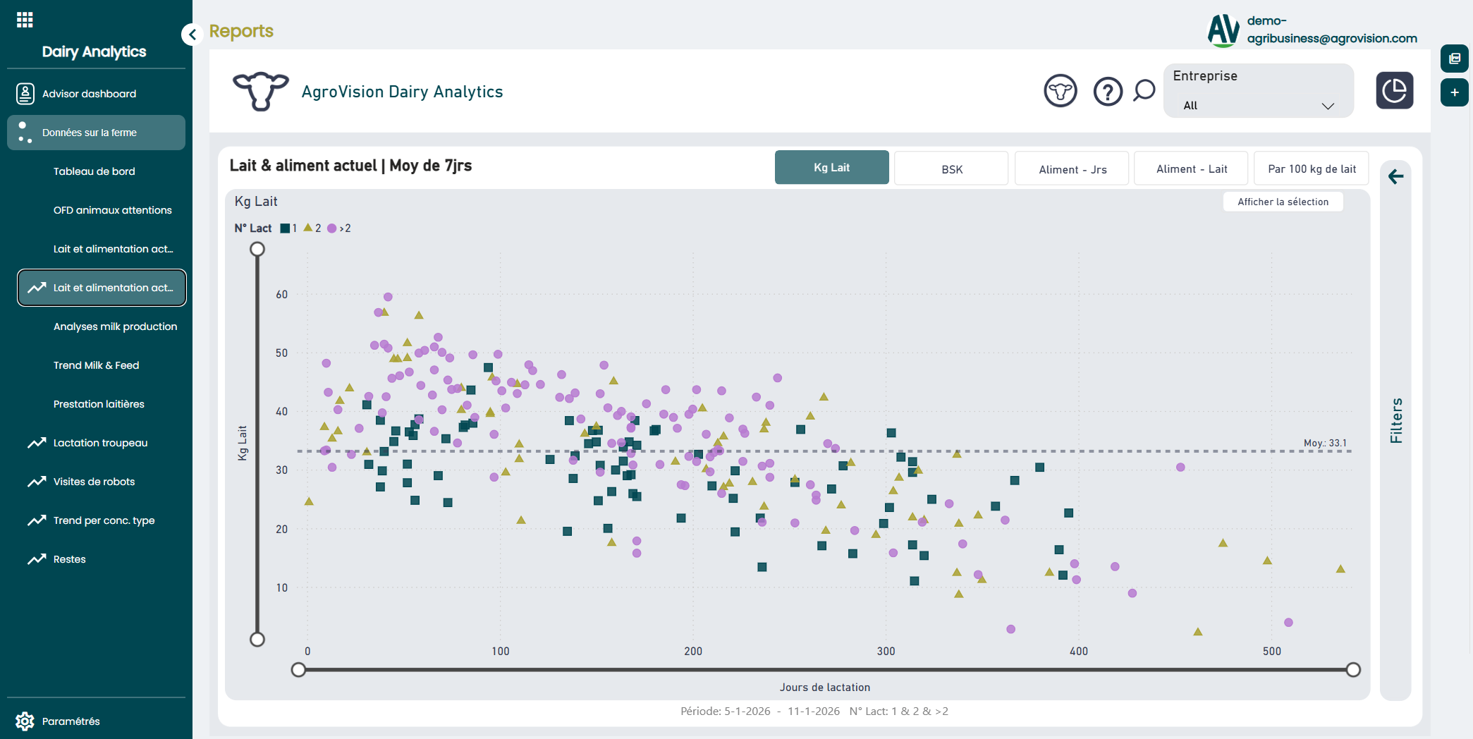 En tant que conseiller laitier, vous vous efforcez d’optimiser l’efficacité et la productivité des fermes laitières. Un outil puissant qui peut vous aider dans ce domaine est AgroVision Dairy Analytics, une plateforme avancée de données sur la ferme.