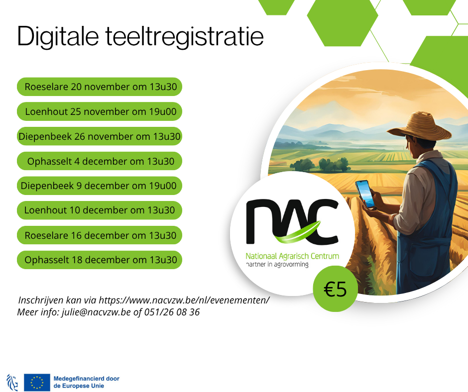 Digitale teeltregistratie wordt stilaan de norm in België. Bereid je hierop voor met de praktische cursus van NAC (3 uur) en leer hoe je vlot digitaal kunt registreren.